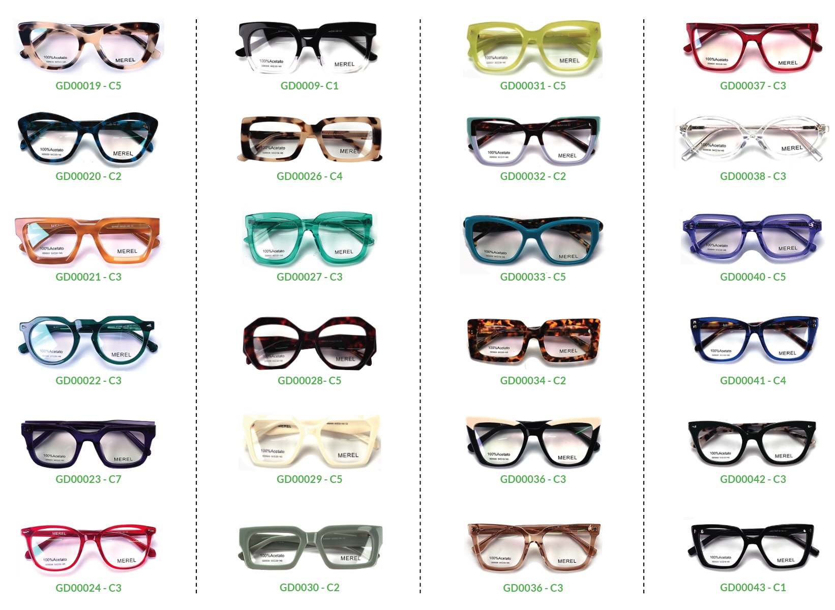 “En Visión Verde encontrarás una amplia colección de armazones modernos y elegantes, 100% acetato, con diseños que van desde lo clásico hasta lo más atrevido. Disponibles en una gran variedad de colores, combinan calidad, estilo y precios asequibles. La mejor opción para que tu óptica ofrezca moda, tendencia y accesibilidad en cada mirada.”